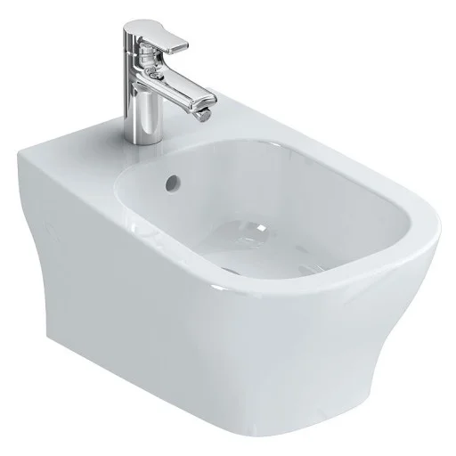 Биде Ideal Standard Active с отвар за смесител, преливен отвор и фиксатори.