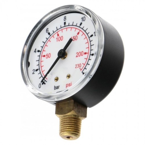 радиален манометър, на изходящата вода. Посредством пластмасовата ръкохватка може да регулирате спирането и пускането на водата, което е удобство при необходимост от източване на системата. Автоматичната